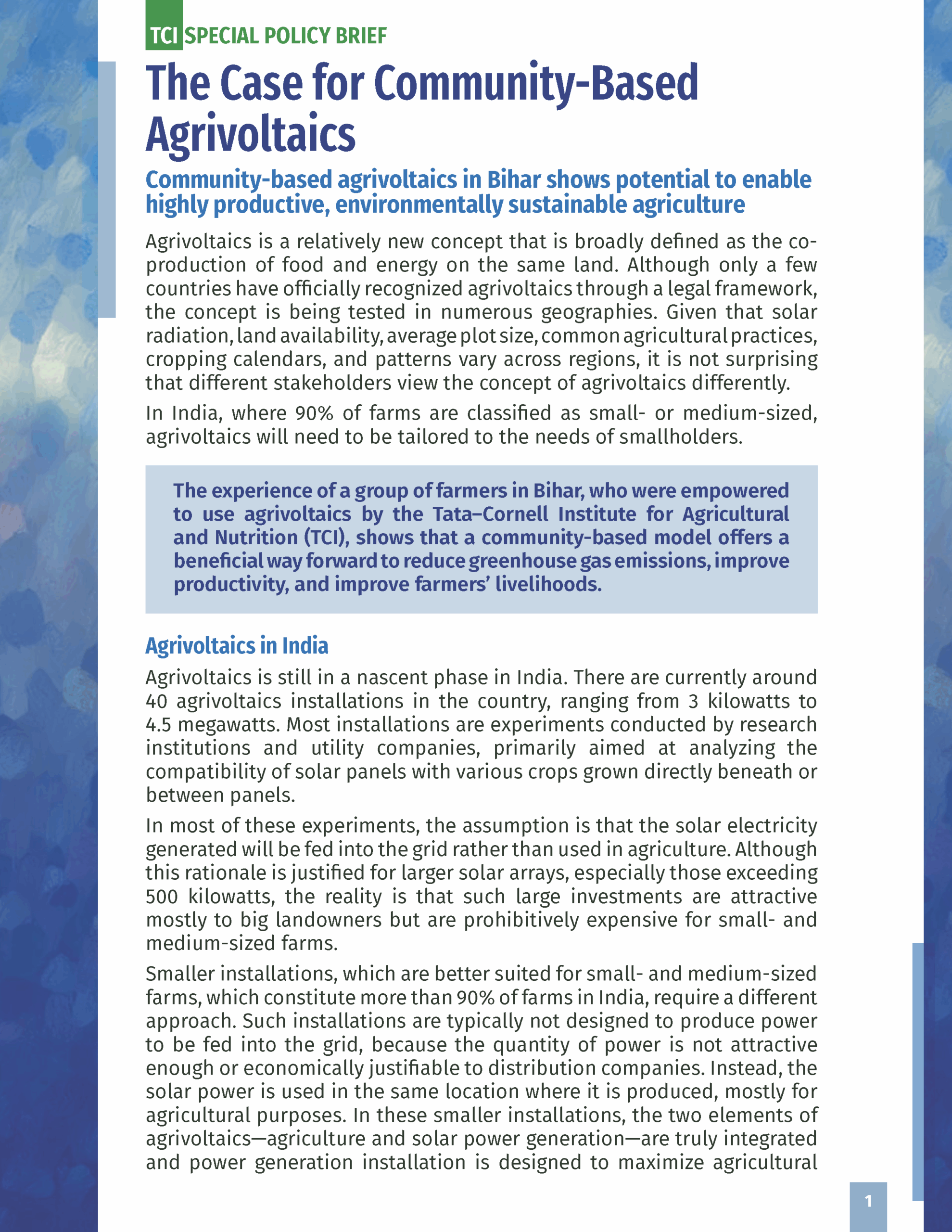 The Tata-Cornell Institute for Agriculture and Nutrition is a long-term research initiative that develops and assesses innovative, food systems-based approaches to reducing poverty and improving nutrition and livelihoods in the developing world, with a specific focus on India.